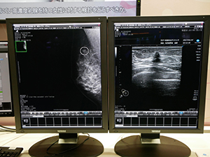 このほか,ブース内には女性医療のコーナーを設置。画像診断ワークステーション「NEOVISTA I-PACS MAMMO SERIES」のCAD機能を用いた乳がん診断のソリューションのデモンストレーションを行った。