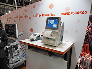 このほか,女性医療に関しては,ボリュームデータの取得により,診断に再現性を持たらすことのできる超音波画像診断装置「ACUSON S2000 ABVS」や,妊娠の可能性を診断する尿中hCGをその場で測定できる「クリニテック ステータス プラス」,臍帯血のpH,pO2測定などの測定が行える血液ガス分析装置「ラピッドポイント500」が展示された。
