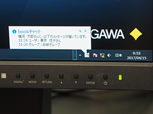 人をつなぐシステムとして新たに提案されたのは,ShadeQuest/bookに搭載されたbチャットである。ShadeQuest/bookは,放射線科医師や診療放射線技師が読影やカンファレンス,研究に必要な画像やドキュメントなどを簡単に収集しストックして活用できるアプリケーションだが,その新たな機能としてLINEなどのSNSのように気軽にコミュニケーションが可能なツールとして開発された。気になる画像をコピーしてチャットで意見を聞くなどの運用が可能になる。