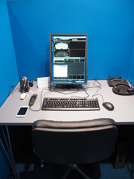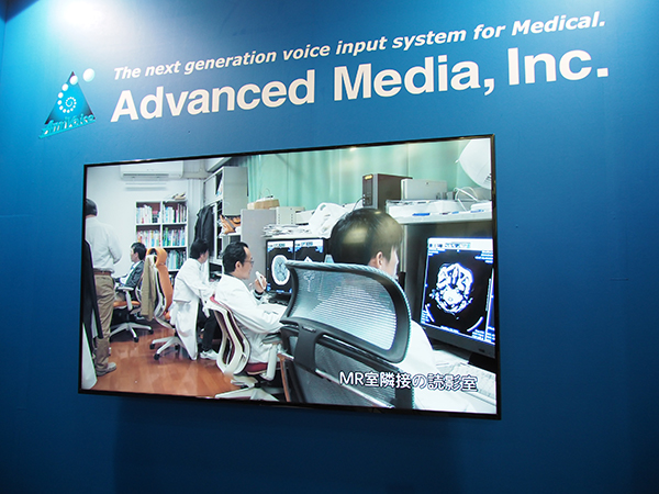 「昨日のありえないを,明日のあたりまえに。」を掲げるアドバンスト・メディアは,今回,放射線科を含め関連する他の診療科への広がりの提案をコンセプトに展示を展開した。スタンドアローンタイプからスマートフォン対応の製品まで,ユーザーの幅広いニーズに応える医療や介護向けの音声入力システム「AmiVoice」シリーズを中心に,多様なインプットデバイスをラインアップ。前回はW.I.P.だった新機能などを紹介し,さらなる機能拡張が図られたことがアピールされた。また,実機での体験が可能なコーナーが設けられたほか,実際の導入施設における使用環境などがモニタで紹介された。