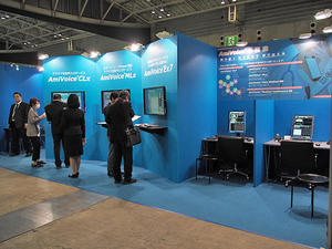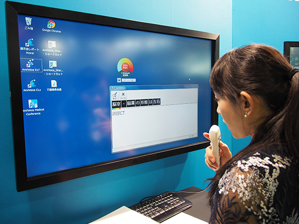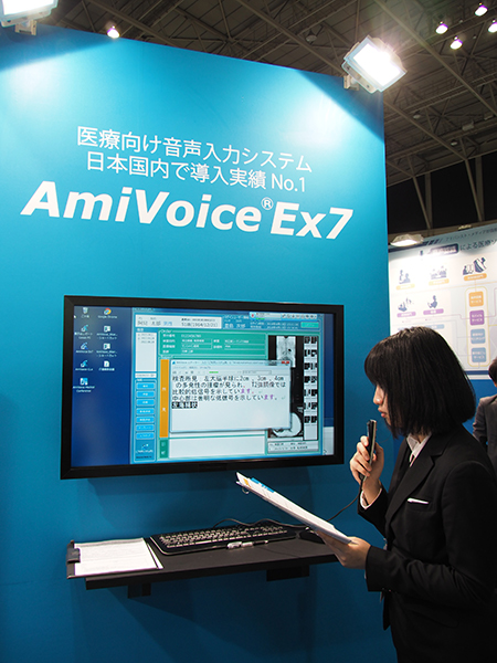 リニューアルされたスマートフォン対応の「AmiVoice MLx」など,幅広いニーズに応える音声入力システムを展示