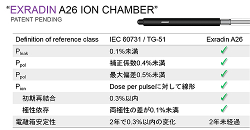 EXRADIN A26は世界初のリファレンスクラスのマイクロチェンバとして販売されました。これまでマイクロチェンバが苦手としていたイオン再結合や極性効果に関して非常に優れた特性を持っています。各種データも準備していますのでぜひ展示会場でご覧になってください。