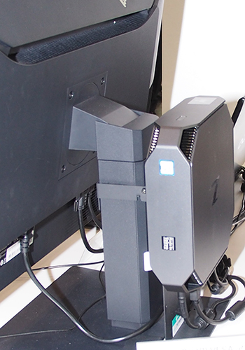 「HP Z2 Mini G3 Workstation」が取り付けられている。