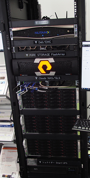 EIZOメディカルソリューションズの統合基盤ソリューションコーナーでは,シンプルでスケーラブルな仮想化基盤を実現するハイパー・コンバージド・インフラ「Nutanix」や,必要な時に必要なだけ容量を拡張可能なスケールアウト型ストレージ「Cloudy NAS/GLS」など,医療機関における拡張性の高いストレージ製品が紹介された。