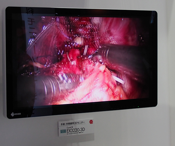 また,ハイブリッド手術室向け映像支援ソリューションコーナーでは,新製品の手術・内視鏡用4Kモニター「CuratOR EX3140」,手術・内視鏡用3Dモニター「CuratOR EX3220-3D」を並べて紹介した。