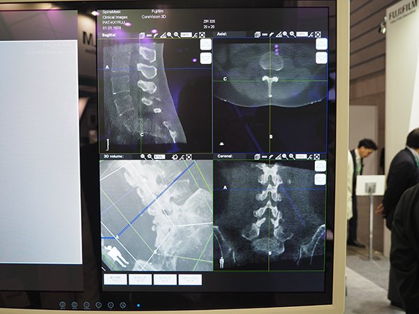 また,同社の静止画像で培ってきた画像処理技術を,動画像に応用し従来にない高画質を可能にする外科用Cアーム型デジタル透視システム「COREVISION」シリーズも初出展した。COREVISIONでは,新X線動画処理エンジン「Dynamic Core Engine」によって,低線量で高コントラストのX線動画像が取得できる。12インチ相当のパネルを搭載し180°のスキャンを行うことで術中の3D画像が取得できる「COREVISION 3D」,スタンダードモデルの「COREVISION LD」,省スペースの「COREVISION SD」をラインアップする。