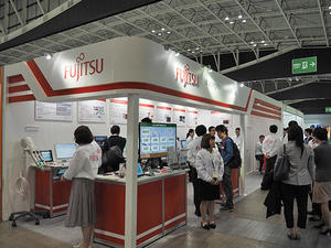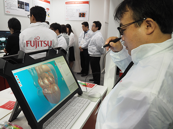富士通は,国内トップシェアの電子カルテシステムベンダーとして,クリニックから大規模病院まで,また病院内だけでなく地域包括ケアシステムを支えるトータルソリューションを提供しているが,ITEMではPACSやRISなど電子カルテシステムと連携して読影や検査業務を支援するソリューションを中心に展示した。また,4月11日に販売開始したばかりの「FUJITSU ヘルスケアソリューション Heart Explorer(ハートエクスプローラー)」のデモを行い,来場者の注目を集めていた。
