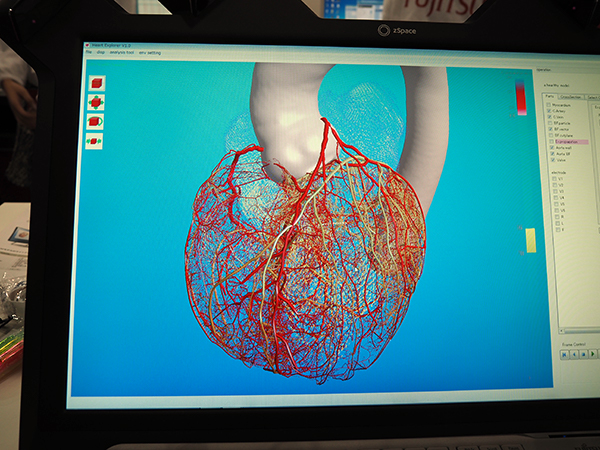 心臓シミュレータのデータを元に心筋や心血管の動きを観察できるHeart Explorerを展示