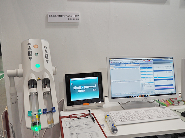 そのほか,横河医療ソリューションズとの共同開発によって電子カルテと連携した読影ビューワとして機能を強化した「HOPE LifeMark-PACS」,院内のDICOM,非DICOM,レポートや検査情報などの診療データを統合管理できる統合ストレージ「HOPE LifeMark-VNA(仮称)」,造影剤注入器(根本杏林堂)とRISの連携システムなどを展示した。