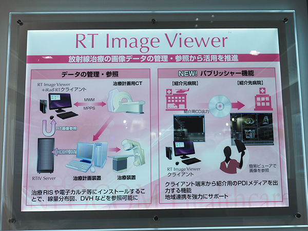 チーム医療を支援するための機能強化を図った治療RIS「iRad-RT」など,診療現場のニーズに応える最新システムをPR