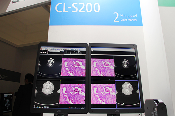このほかブースでは,従来製品のi2シリーズのほか,参考出展として2メガピクセル参照用モニターと,2面5メガピクセルマンモグラフィ用モニターが展示された。