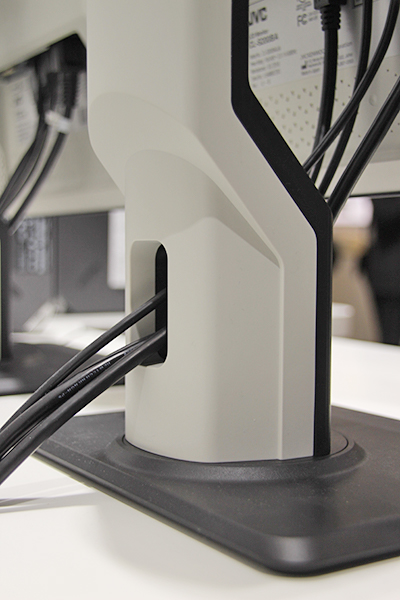 スタンドも含めてモニターの背面は白で統一され,室内やモダリティと色の調和を図っている。