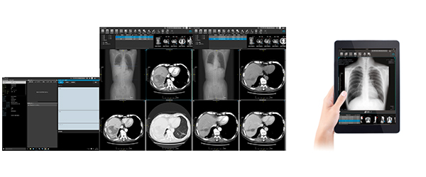 I-PACS CXは基本のビューワー機能に加え,サポート3D処理,デンタル表示,トモシンセシスに対応したマンモ表示,MFER規格に対応したECGビューワー,レポート機能等を搭載した“Multi Viewing PACS”です。院内の様々なデータを集中管理すると同時に,グループ施設等とのデータ共有も実現しました。