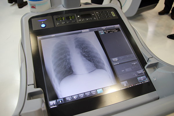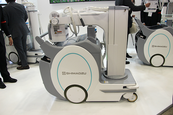 回診用X線撮影装置MobileDaRtの第8世代となる「MobileDaRt Evolution MX8 Version」は,新しく島津社製DR搭載タイプが発売となり実機が展示された。MX8 Versionは,「MX7」からデザインを一新。本体をコンパクト化し,X線管球の支柱に伸縮機構を備えたことで走行時に前方を確認しやすくなった。また,19インチのフルフラットモニタの搭載や,ワイヤレス曝射スイッチのオプション提供など,撮影業務を支援し,操作者の負担を軽減する豊富な機能を備えている。島津社製DRには,新しい画像強調処理オプション“Fine-View”など独自のテクノロジーが搭載される。