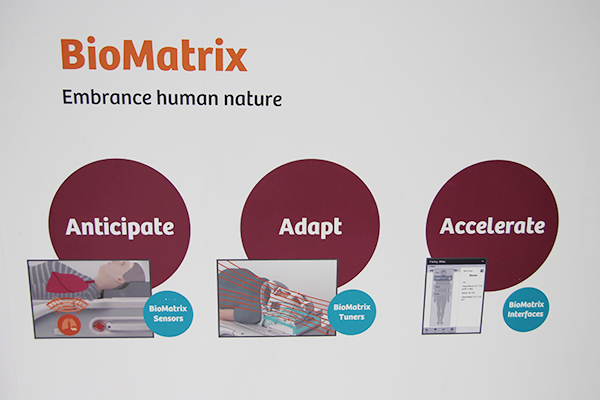 MRIは,新技術コンセプト“BioMatrix Technology”を搭載した3T MRI「MAGNETOM Vida」を展示した。呼吸情報を取得する寝台内蔵の“BioMatrix Sensors”,頭頸部コイルにシムコイルを内蔵し安定した脂肪抑制効果を得る“BioMatrix Tuners”,ガントリ前面のタッチパネルで患者セッティングを支援する“BioMatrix Interfaces”の3つの大きな特徴的技術により,検査精度の向上や患者の快適性を向上させる。