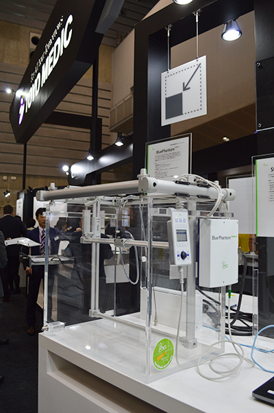 ブース内では,米国IBA Dosimetry社の放射線治療装置用2D水ファントムシステムであるBluePhantom COMPACTも展示された。従来品「BluePhantom2」の高精度かつ優れた効率性・信頼性を継承しながらも,約1/2のサイズという小型・軽量化を実現した。バリアンメディカルシステムズ社が2017年11月から国内展開を開始した放射線治療装置「Halcyon」用として,「Stelth Chanber」と合わせてパッケージ化して販売されている。
