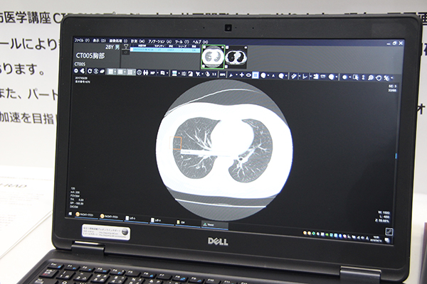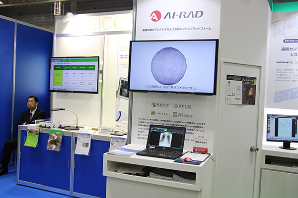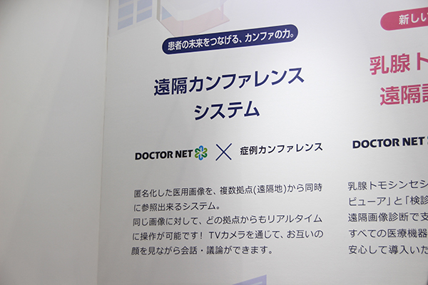 1995年の設立以降,遠隔画像診断事業の草分け的存在として業績を上げているドクターネット。今回の展示では,同社が手がける遠隔画像診断支援サービス「Tele-RAD」やクラウド型遠隔読影ASPサービス「Virtual-RAD」を改めてPRしたほか,東京大学との共同開発研究が開始された人工知能(AI)エンジンプラットフォーム「AI-RAD」を,デモンストレーションを交えて展示した。さらに,次世代の新たなサービスとして,「乳腺トモシンセシス遠隔読影サービス」や,操作の双方向性と確かな情報セキュリティが特長の「遠隔カンファレンスシステム」を紹介した。
