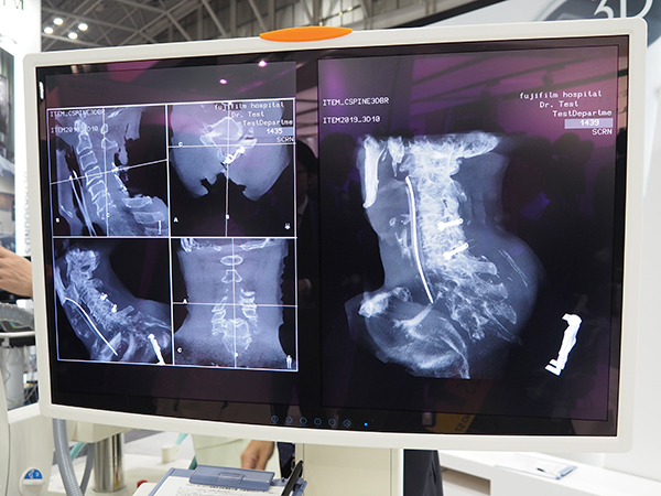 「COREVISION」シリーズは,X線静止画像で培ってきた画像処理技術を生かしたX線動画処理エンジン“ダイナミックコアエンジン”を搭載した外科用Cアーム型デジタル透視システムである。昨年のITEM2018に合わせて発表され展示されたが,今年は低線量ながら高鮮鋭,高コントラストで得られた多くの臨床データを含めて紹介した。COREVISIONシリーズは3つの製品がラインアップされており,最上位機種となる「COREVISION 3D」は,31cm×31cmの大画面FDを搭載し,Cアームの180°相当の回転による“Smart Scan”によって術中の3D画像撮影が可能となっている。スタンダードの「COREVISION LD」は,31cm×31cmのFDでCアームの開口83cmとワイドで手術台などとの干渉を避け,165°までの振り角によって幅広い角度でのポジショニングを可能にする。「COREVISION SD」は,20.5cm×20.5cmのFDで19インチデュアルモニタ一体型のオールインワンタイプで省スペースで手術室などでの撮影や手技をサポートする。FDパネルには,COREVISION 3DとLDはISS方式を,SDにはCMOSタイプが採用されている。