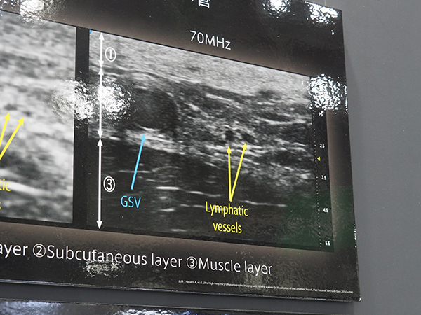 70MHz超高周波プローブでは大伏在静脈やリンパ管などの描出が可能