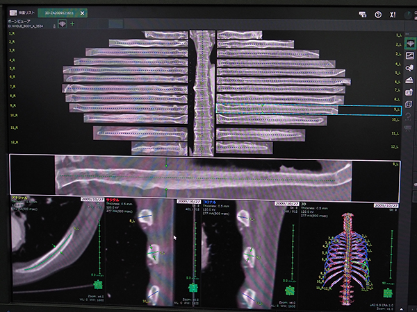 肋骨の転移や骨折の確認を容易にするSYNAPSE VINCENTの“ボーンビューア”