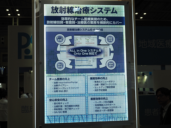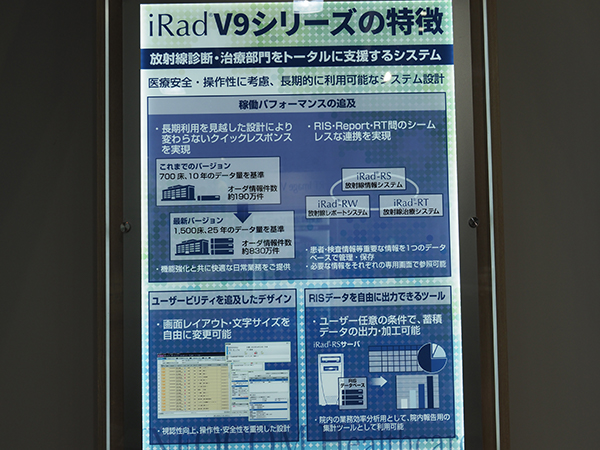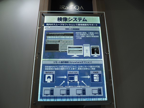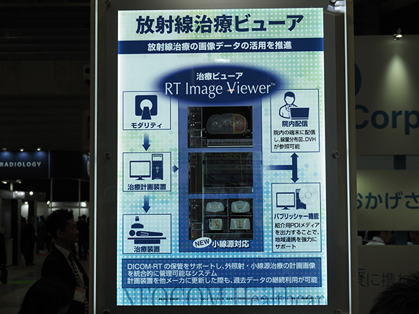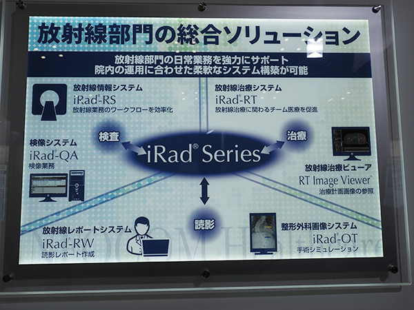 ブース内では,このほかにも検像システム「iRad-QA」,整形外科画像システム「iRad-OT」,放射線治療ビューワ「RT Image Viewer」のパネル展示とデモンストレーションを行い,検査から診断,放射線治療までの放射線部門の業務を支えるソリューションをPRした。
