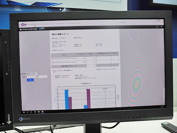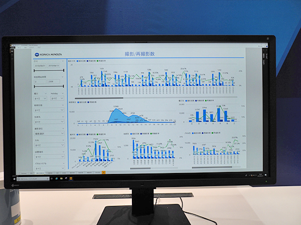 一方で,コニカミノルタが近年強化しているヘルスケアITのソリューションにも大きな動きがあった。新たなブランド名として,「FINO.VITA」が立ち上げられた。ラテン語で“上質な人生”を意味する。今回のITEMでは,この新ブランドの名を冠した2製品が登場した。その1つ被ばく線量管理システム「FINO.XManage」は,データの収集・管理だけでなく,診断に適した画像を確保しつつ,被ばく線量の最適化を図ることをめざして開発された。2020年4月に予定されている被ばく線量管理の義務では,CT,血管撮影装置,SPECT/CT,PET/CTが対象となっているが,FINO.XManageはそれらに加えて,一般撮影にも対応しているのも大きな特長である。FINO.XManageの「一般撮影業務マネジメントシステム」では,被ばく線量データを基に,部位や撮影,再撮影数,スタッフ,撮影時間,検査時間などの項目別に統計処理を行い,グラフで表示。放射線部門の検査業務を可視化して,被ばく線量の最適化だけでなく,業務改善に役立てることができる。例えば,再撮影が多い撮影部位を抽出して撮影法を検討したり,スタッフごとに異なる検査時間の問題点を分析したりして,標準的な検査を確立するといったことが行える。