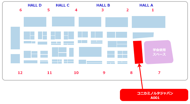コニカミノルタブースでは製品種ごとにゾーン化し,製品の展示および技術の紹介を行います。