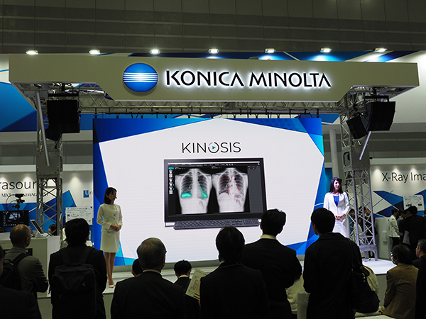コニカミノルタジャパンは,展示テーマに「技術をつなぐ,人をつなぐ,未来をつなぐ。——Connect Technology, Connect People, lead the Future.」を掲げた。コニカミノルタは1933(昭和8)年に,初めての自社開発・生産による「さくらレントゲンフィルム」を発表し,その後長い年月をかけて,X線撮影に関する製品を開発し,放射線医学の発展に貢献しつつ,技術力に磨きをかけてきた。プレゼンテーションステージでは展示テーマに合わせて“技術をつなぐ”“人をつなぐ”“未来をつなぐ”最新製品と技術を紹介。技術をつなげることが,人をつなげることへと結びつき,さらに人をつなげることが未来につながるという,メッセージを来場者に送った。