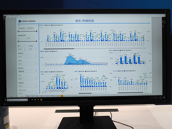 ITEMで初披露された被ばく線量管理システムのFINO.XManageは,CT,血管撮影装置,SPECT,PET,一般X線撮影装置の線量情報を取得し,被検者ごとに被ばく線量や撮影プロトコールなどをデータとして管理・記録できる。2020年4月に予定されている医療被ばくの線量管理・記録の義務化に向けて発表されたシステムである。義務化の対象となるモダリティは,CT,血管撮影装置,SPECT,PETだけであるが,あえて一般X線撮影装置にも対応したところに,X線撮影装置メーカーの強いこだわりが感じられる。最も撮影頻度の高い一般撮影の被ばく線量を低減したいとの考えから,FINO.XManageの「一般撮影業務マネジメントシステム」において,被ばく線量だけでなく,写損回数や再撮影数,検査時間,稼働時間といった情報を担当技師や部位別,装置別などに集計してグラフ表示できるようにした。この集計データを分析することで,再撮影率の高い部位や担当者などを特定し,撮影法の検討や教育に役立てることができる。再撮影数を減らすだけではなく,被ばく低減,撮影技術の向上といったメリットはもちろんのこと,効率的な人員配置やモダリティの有効活用など,放射線部門のマネジメント,医療機関経営にも寄与するシステムである。