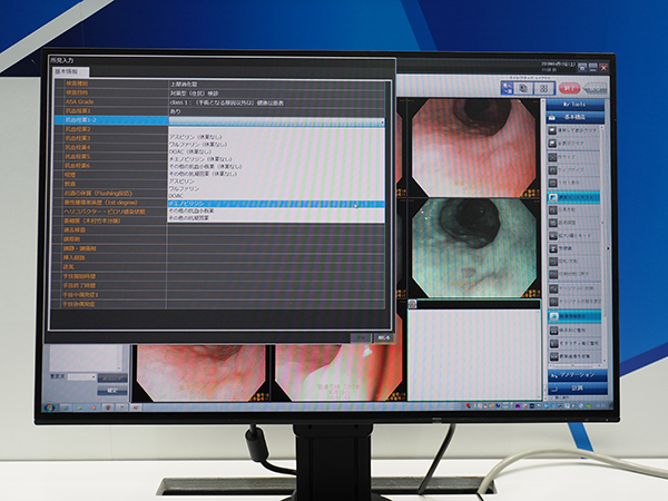 このほか,ヘルスケアIT関連の展示では,X線画像,超音波画像や内視鏡画像を一元管理できる診療所向けの画像診断ワークステーション「Unitea α」に,内視鏡レポート作成ソフトウエアを搭載したことが紹介された。オリンパスとの提携により,日本消化器内視鏡学会のJEDProjectの定義・入力項目に対応したレポートを,プルダウンメニューを用いて容易かつすばやく作成できる。