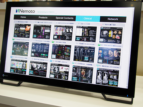 根本杏林堂は今回,ブース中央にモニタを複数設置し,ユーザーから提供された臨床画像と併せて実際の注入プロトコールを提案することで,同社のインジェクタを用いることにより得られる臨床効果をアピールした。