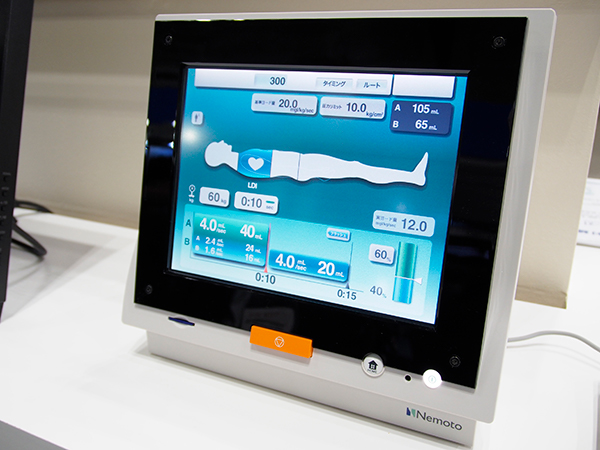 根本杏林堂は,「最適な画像を得るための造影に向けて」をテーマに掲げ,同社製品のうち,CT,MRI,アンギオ用のデュアルタイプのインジェクタ3製品を中心に展示した。いずれも造影剤と生理食塩水の2つのシリンジをセットして使用でき,また,CTとMRIのインジェクタについては,同社の造影情報管理システム「CEエビデンスシステム」に対応している。さらに,近年注目されている造影検査法について,同社製品のさまざまな機能を使用した実際のプロトコールが提案され,インジェクタを使用することによる臨床効果を具体的に実感できる工夫がなされていた。