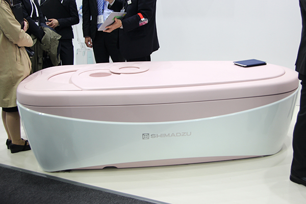 現在,日本人女性の11人に1人が生涯に一度は乳がんに罹患し,年間に約1万5000人が乳がんで死亡すると推定されており,早期発見の重要性が指摘されている。Elmammo Avant Classは,マンモグラフィと異なり,痛みを伴わずに検査可能なことに加え,従来機の特長である高い感度と全身PET装置の約2倍の解像度は維持したまま,胸壁近傍の撮像視野外領域(ブラインドエリア)の縮小を実現。現在,国内14施設で稼働し,人間ドックのオプション検査などに活用されている。今後は,国内での普及に加え,中国の富裕層を端緒として海外への展開も図る。なお,消費電力についても30%削減(自社比)されており,環境への負荷も軽減する。
