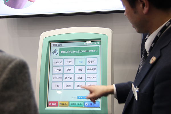 MERSYS-Ⅳは,大型タッチパネルと音声ガイダンスでスムーズな受付を実現し,医療機関の外来受付をサポートする。また,国立研究開発法人新エネルギー・産業技術総合開発機構(NEDO)プロジェクトによるAI問診サービスの成果報告も展示された。来院した患者が,タッチパネル上で主訴などを回答していくと,AIがどの診療科に行くべきかを提示する仕組みで,働き方改革へのさらなる貢献を実現するものとして参考出展された。なお,MERSYS-ⅣをはじめとするMERSYSシリーズは,子会社の島津エス・ディー(株)が販売していたが,2019年4月1日より販売業務を島津へ移管した。