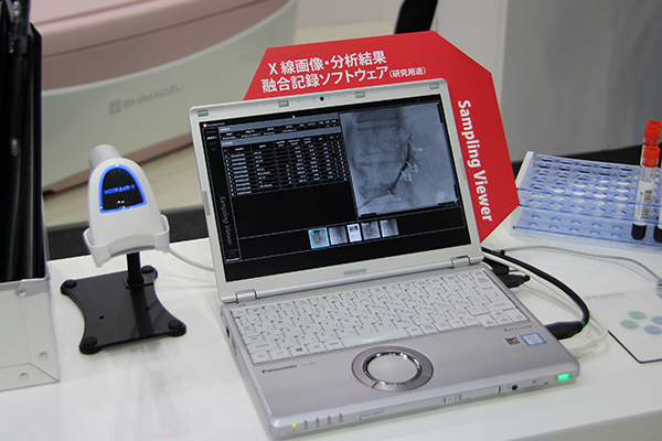 X線画像・分析結果融合記録ソフトウエア「Sampling Viewer」。1つの画面で分析結果と血液採取位置の情報を表示できる。