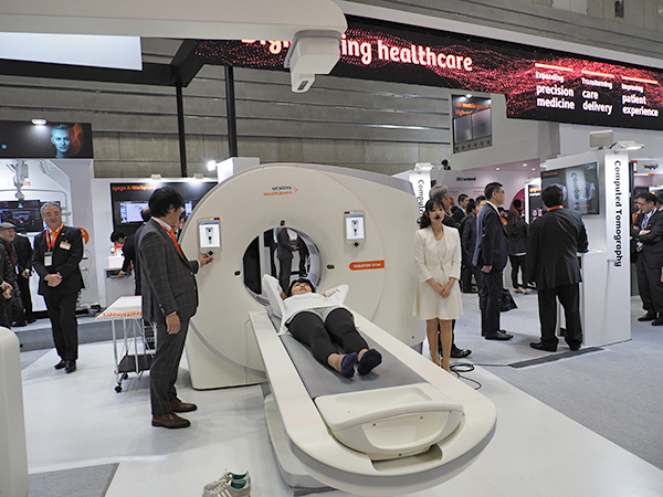 今回のシーメンスヘルスケアの展示テーマは,“We enable you to deliver high-value care.”。価値の高いケアを実現するための製品や技術を発表し,会場内は常に多くの来場者で賑わっていた。放射線診療でも人工知能(AI)の応用が関心を集めているが,同社も1990年代からAI技術の開発を進めてきた。ブース内では,その成果と言える診断・検査を支援する技術を複数披露した。また,価値の高いケアを実現する画像診断装置の新製品も登場した。