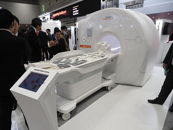 MRIコーナーには,新型MRIの2機種「MAGNETOM Lumina」(着脱式寝台タイプ)と「MAGNETOM Altea」(固定式寝台タイプ)が展示された。両機種ともに,高い再現性と生産性の実現をめざして開発された。MAGNETOMブランドのMRIは,研究用と臨床用に大別されるが,それぞれ3Tと1.5Tのハイエンドクラスに位置づけられる。Luminaは「月」,Alteaは「星」を意味する。