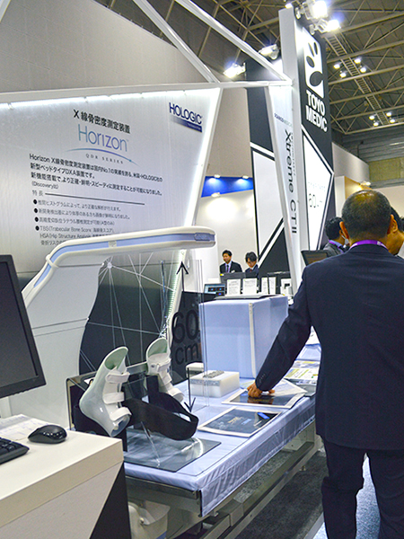 東洋メディックは,骨密度測定装置「Horizon」や世界最高の解像度を有する末梢骨QCT(pQCT)「Xtreme CT Ⅱ」をはじめ,世界各国で幅広く導入されている放射線診断装置や放射線治療周辺機器,患者安全の確保や検査環境を向上させる関連製品などを展示した。また,2018年より国内総代理店として取り扱いを開始したアゼモトメディカル社製の線量管理システム「AMDS(アミダス)」も紹介した。
