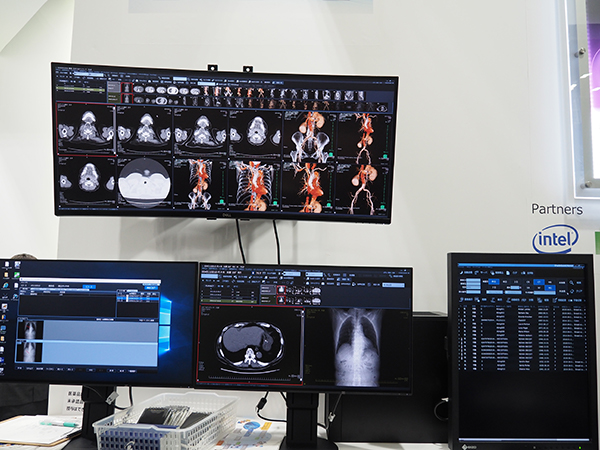 ●マルチベンダーのAI環境や曲面ディスプレイなど“インテリジェントPACS”を参考展示