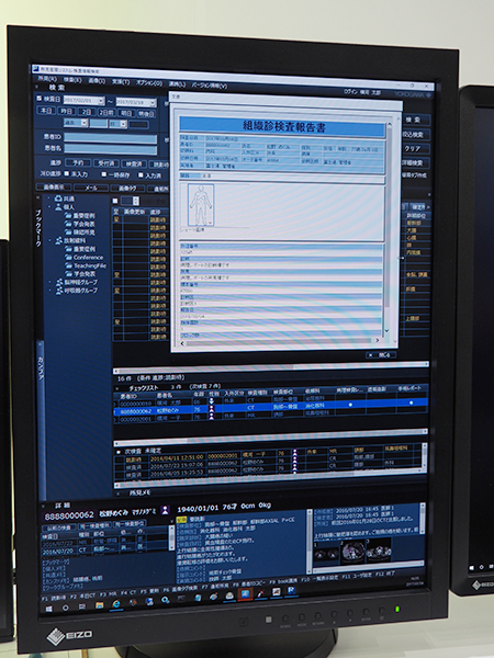 電子カルテとの密な連携によって「ShadeQuest/Report」のフレーム内に病理や手術のリストを表示。ワンクリックで詳細情報が参照できる。