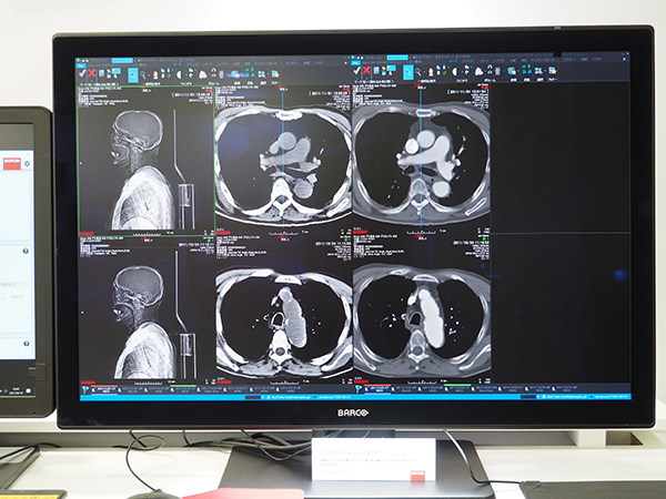 医用画像表示ディスプレイソリューションの目玉となったのは,2021年1月に販売が開始されたマルチモダリティ対応カラーディスプレイ「Nio Fusion 12MPディスプレイ」である。同社の「Fusion」シリーズの最新機種で,仕切りのない30.9インチのワイド画面に多様なモダリティ画像を1画面に表示できる。同社が世界で初めて開発した12MPディスプレイ「Colonis Uniti」に続く12MPディスプレイとして,Colonis Unitiで培った多くの独自機能をサポートする。