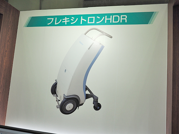 エレクタ社製の密封小線源治療装置「フレキシトロンHDR」も紹介された。フレキシトロンHDRは,Ir-192線源を使用した高線量率リモートアフターローディングシステムで,用途に合わせて装置チャンネル数を10,20,40から選択できる。線源送り出し方式による線源移送で,停留位置精度は±0.5mmと高精度な治療を実現する。また,コンパクトサイズで重量も軽く,取り回しがしやすいのが特長である。
