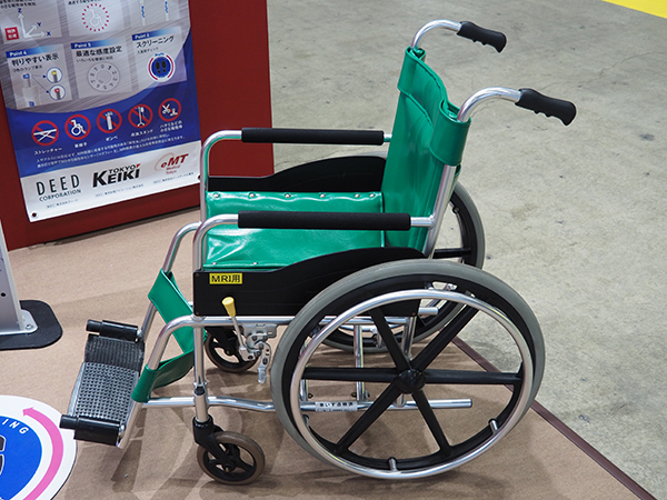 非磁性体の車椅子なども展示された