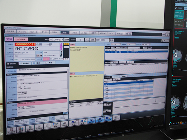 「ShadeQuest/RIS」ではモニタのワイド化に合わせ表示内容を最適化。タブで隠れていた連絡メモや患者コメントを常時表示