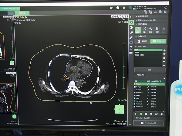 治療計画において,手間と時間がかかる作業として,リスク臓器の抽出(臓器の輪郭作成)があり,各社からそれらを支援するソフトウェアが提供されているが,SYNAPSE Radiotherapyでは,ディープラーニング技術を利用することで,輪郭の抽出精度と速度を向上し,作業負荷の軽減と治療計画業務の効率化が期待できる。