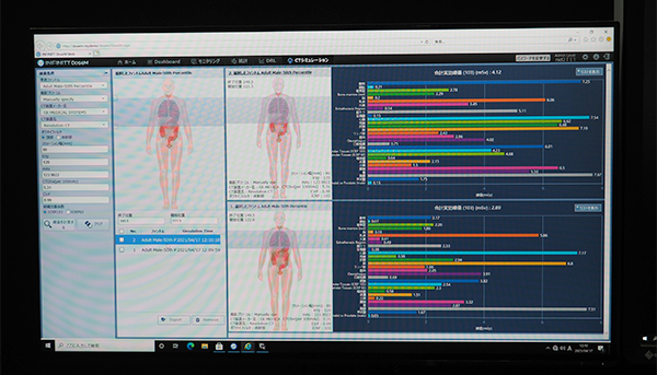 被ばく線量管理システム「INFINITT DoseM」。CTの実効線量のシミュレーションが可能