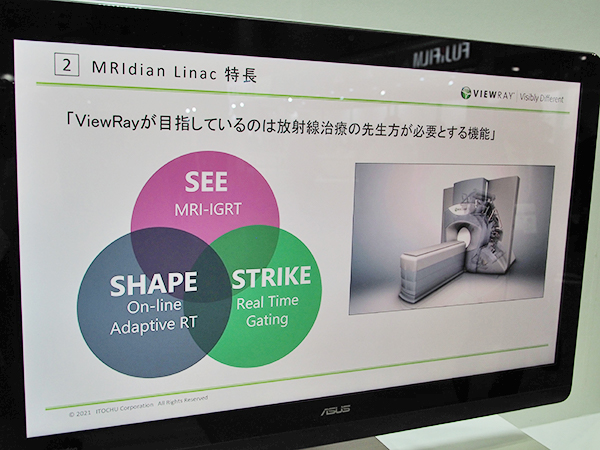 伊藤忠商事では,MRIとリニアックの組み合わせという新たな価値を提供することで,放射線治療を進化させるViewRayの製品を国内でも広げていくことをアピールした。