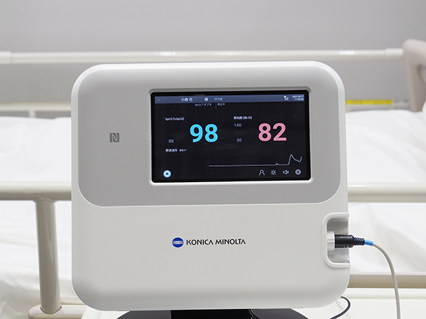 「生体情報モニタリングシステム VS1」のベッドサイドモニタ。SpO2や脈拍数など,必要な項目に絞って管理する