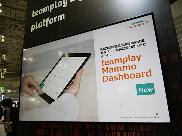 その代表格として,2020年に発表された“AI-Rad Companion”に3種の新シリーズが追加されたことが挙げられる。従来「AI画像解析受託サービス」として提供されてきた“AI-Rad Companion Chest CT”に加え,新たにアルツハイマー型認知症などのリスク評価が可能な“AI-Rad Companion Brain MR”,高精度な前立腺生検を支援する“AI-Rad Companion Prostate for Biopsy”,放射線治療計画のための“AI-Rad Companion Organs RT”が用意された。また,AI-Rad Companionのプラットフォームとなる「teamplay」は,被ばく線量管理やモダリティの稼働状況の分析などが可能であったが,新たに効率的なマンモグラフィ検査をサポートする“teamplay Mammo Dashboard”などが加えられた。さらに,今回のITEMでは,2020年2月に発表された遠隔で検査を支援できる「syngo Virtual Cockpit」も紹介された。CTやMRIなどの検査において,離れた場所から操作画面を共有し,映像や音声によるコミュニケーションをとりながら,検査を進めることが可能だ。