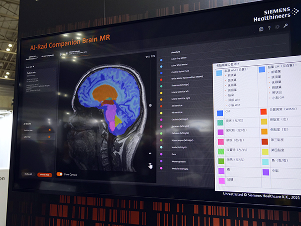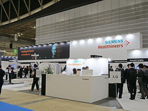 シーメンスヘルスケアは,デジタルトランスフォーメーション(DX)により医療が抱える課題を解決し,患者にとって最適で高品質な医療の提供をサポートするソリューションを来場者に披露した。“Shaping the future of healthcare”をブースのテーマに掲げ,コロナ禍により展示内容が限られる中,人工知能(AI)を用いた最新の製品・サービスが登場した。